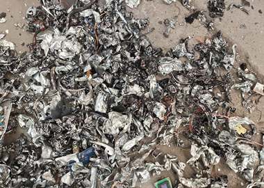 上料輸送機將油桶輸送至雙軸破碎機,進行預撕碎處理,再通過錘式破碎機將金屬打散,將其卷成球狀,同時可以分離依附在鐵上的其他雜質,滾筒磁選機將鐵金屬分選出來,雜質進行分離。整套生產線配備專業降塵系統,整個回收過程潔凈無污染。